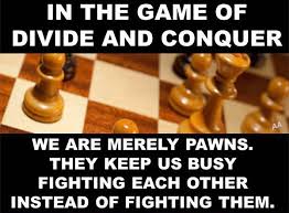 By getting groups of people such as the left versus the right, the rich versus the poor, men versus women, young versus the old, the Christians versus the Muslims creates a diversion that allows the rulers to escape the scrutiny of their subjects.